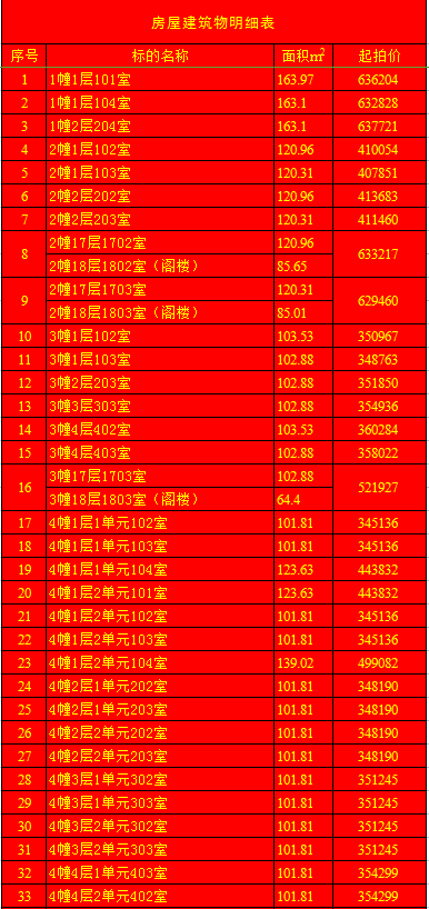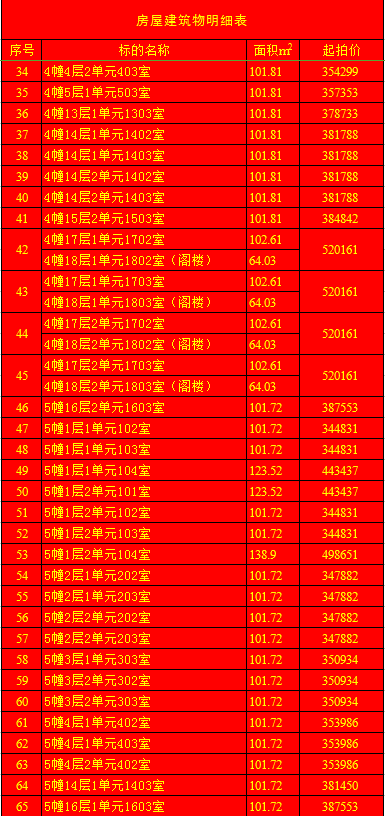 受蘭陵縣建安房地產(chǎn)開發(fā)有限公司委托,我公司定于2020年1月11日上午9時,在蘭陵縣黨校二樓會議室(順和路西段路北)公開拍賣:蘭陵縣明珠新城房產(chǎn)112套及部分儲藏室。房產(chǎn)面積64.03-163.69㎡不等(其中18套房產(chǎn)與上層閣樓整體拍賣);儲藏室面積6.28-13.02㎡不等;單套拍賣。競買保證金:房產(chǎn)5萬元/套,儲藏室1萬元/套。請微信掃描本公告下方二維碼,關注“光彩銀星拍賣”公眾號,查看拍賣標的詳細清單。